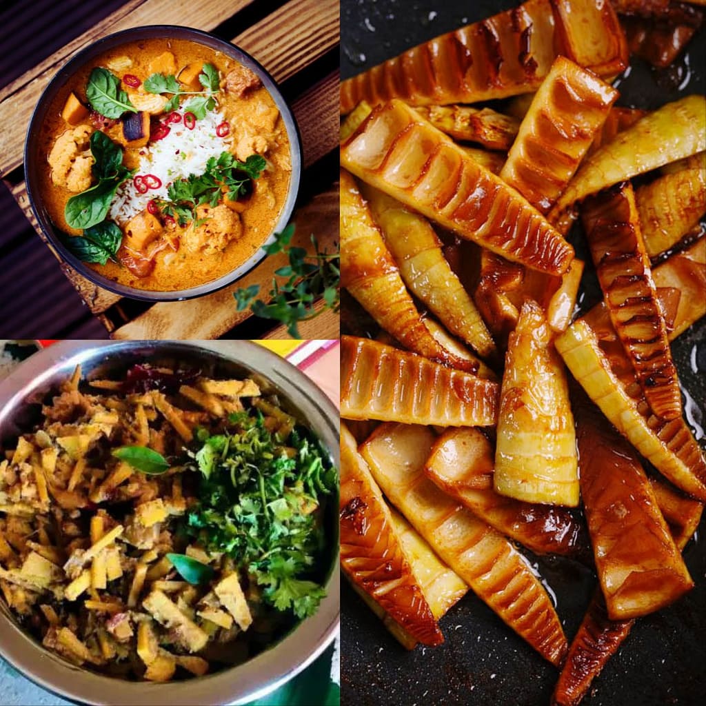 •Bamboo Shoot Fry – Fresh bamboo shoot stir-fry.•Rongmei Bai (Rautui Bai) – Fresh shoots cooked with green chilies, pork or bean leaves.